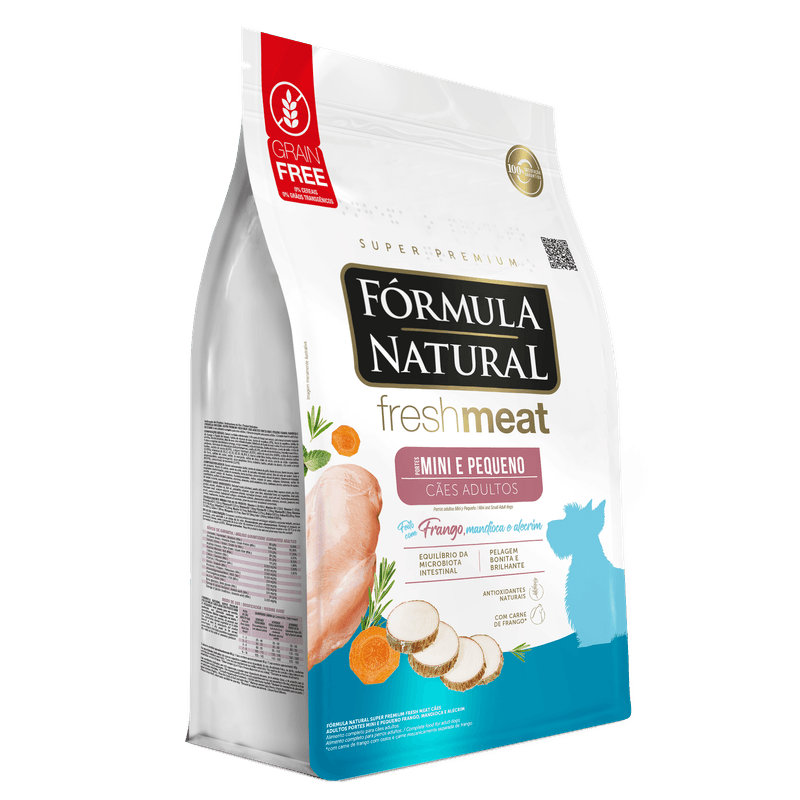 Desenvolvida por médicos veterinários, a linha Fórmula Natural Fresh Meat utiliza os conceitos mais avançados da nutrição de cães e gatos. Naturalmente saborosa e nutritiva, possui como grande diferencial a utilização de carne fresca e fontes especiais de carboidratos, fibras, vitaminas e minerais, como as frutas e vegetais. É uma linha completa que oferece versões com cuidados específicos para diferentes necessidades e estágios de vida. Fórmula Natural Fresh Meat Cães Adultos Portes Mini e Pequeno oferece todos os cuidados para cães adultos de porte médio.